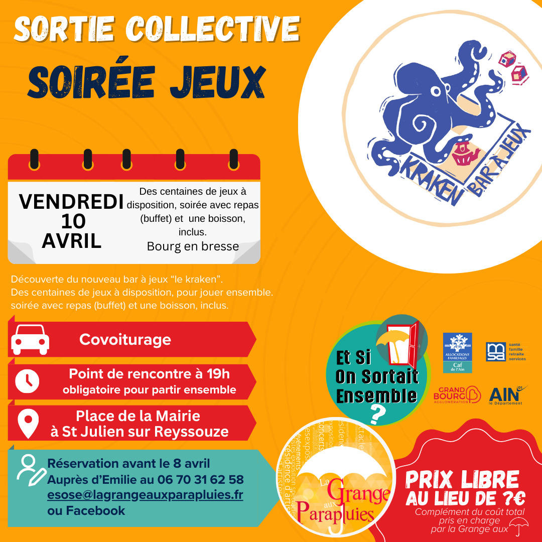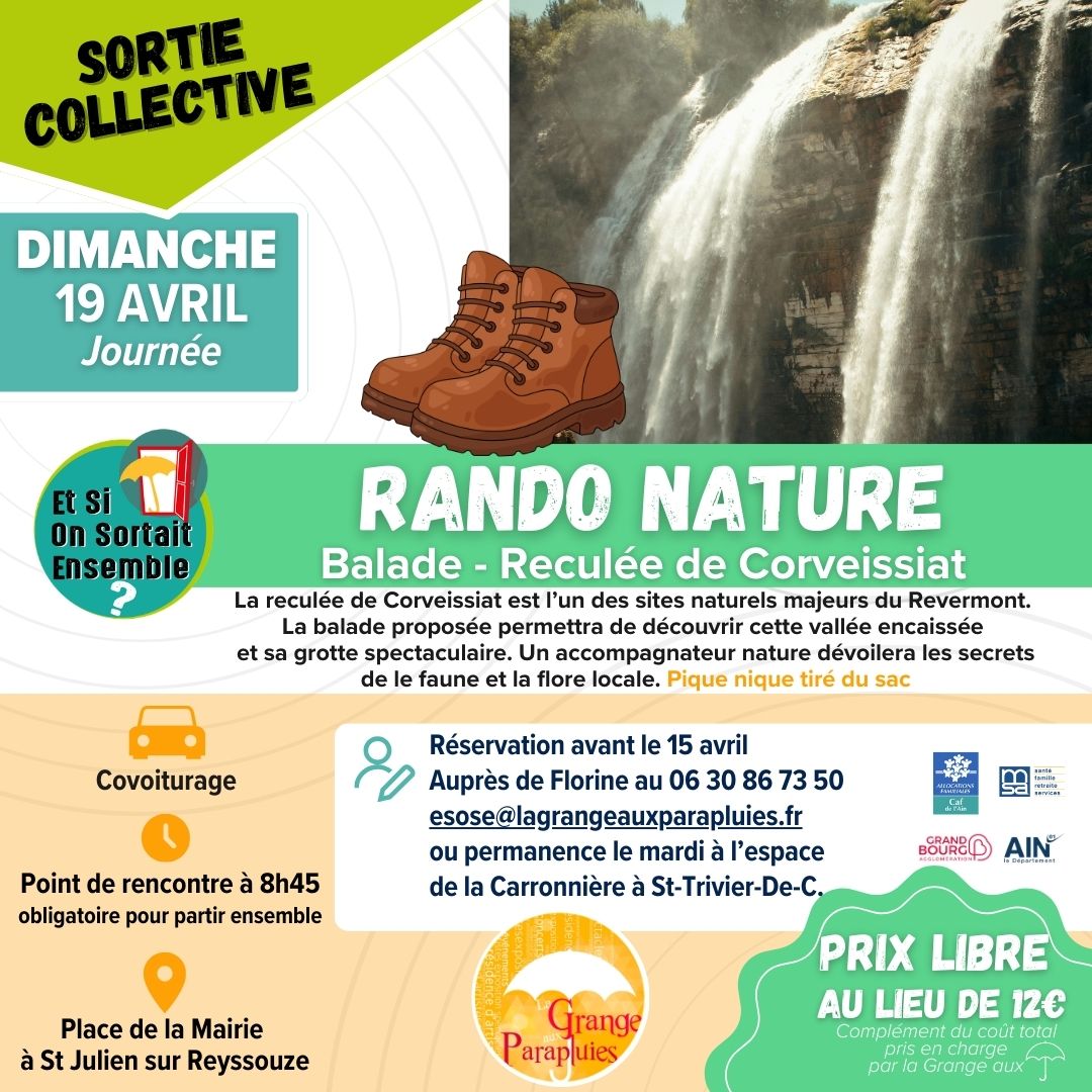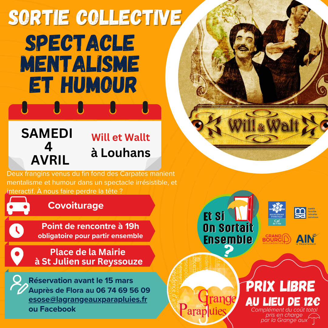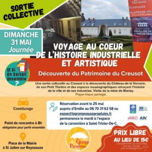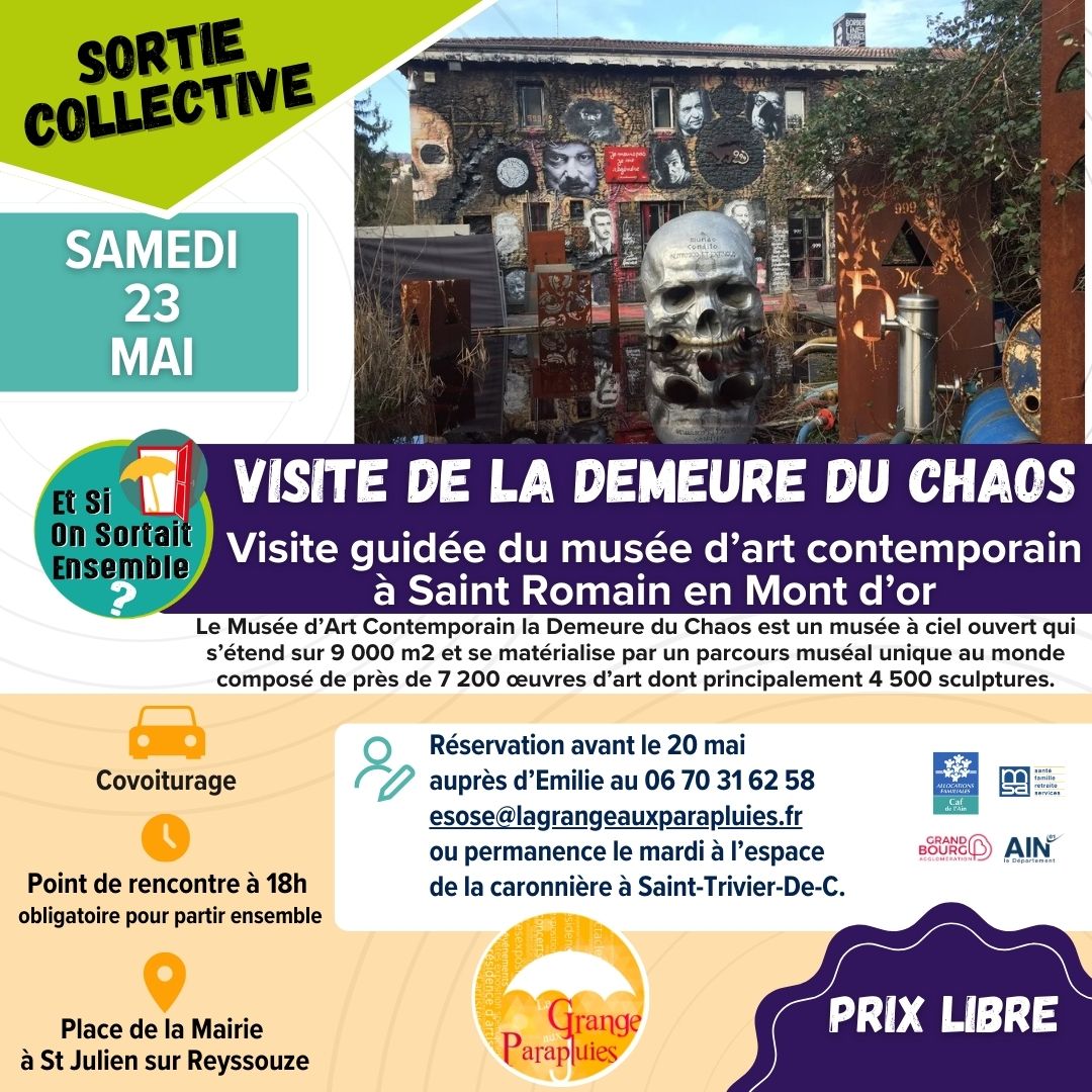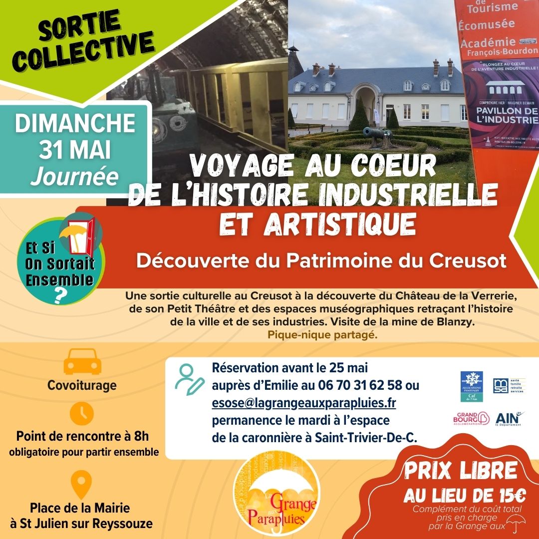 👋La Grange Aux Parapluies organise des sorties collectives  à prix libre, en covoiturage au départ de Saint-Julien-sur-Reyssouze, dans ambiance conviviale !
